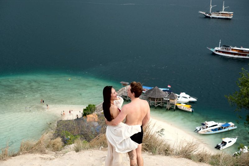 Tak berhenti di situ, rute darat ini juga membawa tamu ke Gua Rangko, kolam alami air asin dengan cahaya biru magis di dalam gua. Petualangan ditutup dengan sunset dramatis di Bukit Sylvia, spot sabana ikonik Labuan Bajo. Seru banget, dan Instagrammable maksimal!